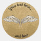 Wide open beige wings illustration. Grunge beige background. Top and bottom custom text.