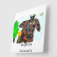 This square wall clock has nothing boring about it it had a goofy brown spotted dog with a big nose and yellow colored eyes. It is a beautiful summer day even a cute little black bird taking it easy by sitting on the dogs head. Sometimes being bored can be useful especially on a warm summer day, by taking time just to enjoy the day and not worrying about time.