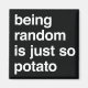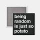 Being Random is Potato. A funny magnet that says Being Random is Just So Potato. Great for random people and those who love funny internet magnets.
