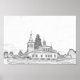 Belarus Parečča /Porechye Cityscape City View Architecture Orthodox Church View Monochrome Sketch Poster to add to your travel memorabilia collection. A cool present / gift idea for all who love custom design items, positive vibes, nature, travelling, is of a Belarusian Descent etc.
