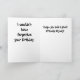 This card is great fun and good quality. I loved the humour inside and on the back. There is the opportunity to change the orientation of this card from landscape to portrait, which I did. It is relatively straightforward to amend the typeface to fit the new orientation. It was well packaged with no plastic. The printing on this card is excellent.
