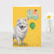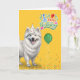 Funny belated birthday wishes never looked so cute than this American Eskimo dog in a party hat and silly dog lover humour.