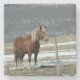 Belgian Draught Horse In Paddock, Stone Coaster. Digital Art. Single Belgian horse in winter paddock behind barbed wire fence. Fits well in farm or ranch decor. Fully customisable.