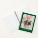A personalised journal with the saying: Sleigh bells ring. Designed with an outdoorsy photograph featuring a team of 2 belgian draught horses pulling a sleigh. Snowflakes gently falling down with snow covered pine trees in the background.