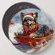 Belgian Shepherd in Sledge Let it Snow Christmas 6 Cm Round Badge