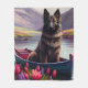 Belgian Shepherd on a Paddle: A Scenic Adventure Fleece Blanket