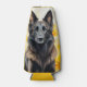A beautiful dog lover watercolor illustration of a Belgian Tervuren dog looking great against a field of yellow poppies that looks great on this beer cozy and a super gift idea for Father's Day, Mother's Day and birthdays.