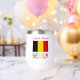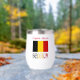 Personalised thermal wine tumbler features the Belgian Flag with the word BELGIUM underneath, in the colours of the flag. A space for your name is featured as well, so you can personalise it with red letters, or, create a gift. The flag of Belgium is three vertical stripes in a tricolor, of red, black and gold or yellow. Thoughtful housewarming gift for the home bar. Fun to use at family reunions and travel group events. Lovely for honouring ancestry or heritage and vacation memories.