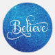 Believe Calligraphy Script Royal Blue Faux Glitter Classic Round Sticker