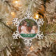 Believe Elegant Calligraphy Family Photo Green Snowflake Pewter Christmas Ornament