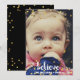 Christmas holiday photo card with Believe written in a cute modern white handwritten font with hearts swash ornaments and glamourous gold faux foil confetti at the top and bottom of the card. Personalise with your family photograph, family name and year. The back of this modern holiday photo card is a black background with faux gold foil confetti. PLEASE NOTE: These are flat printed graphics - not real gold foil. If you need any assistance customising your product please contact me through my store and I will be happy to help.