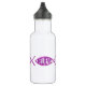 Three Christian fish symbols with the word "BELIEVE" in the centre decorate this water bottle.