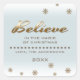 Believe. Gold Script and Snowflakes Christmas Square Sticker
