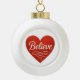 Believe Heart Ceramic Ball Christmas Ornament