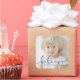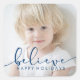 Believe HOLIDAY BLUE Hand Lettered Script PHOTO Square Sticker