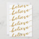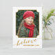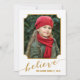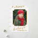 Your Christmas greetings to friends and family will be unique using this pretty, crisp, clean, simple holiday photo card design with the word "Believe" written in a popular, gold script font on a white background and a matching colour for a simple frame surrounding your family holiday photo . Design by ELKE CLARKE© FOR MONOGRAM GALLERY. Replace sample photo with your own. Gold "believe" pattern on a white background on back of card can be changed or deleted. Other colours available in store or contact designer.