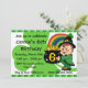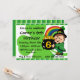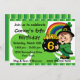 Cute leprechaun holding a big pot of gold and lucky shamrocks make this the perfect invitation for a St. Patrick's Day birthday or holiday party. Customisable text and even a place place to add your little leprechaun's age for a birthday party. Coordinated postage. Cute leprechaun design also available on T-shirts, apparel, buttons, stickers, magnets, mugs and more! PinkInkArt original!