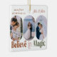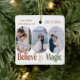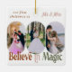 Believe in Magic photo ornament for newlyweds first Christmas - or you can edit the wording for any one and any occasion. The design features 6 photos and you can also change the colour of the text and background. Your photos are displayed in 16:9 portrait format and the photo template will automatically display them in a pill-shaped, rounded lozenge shape. Please browse my Rounded Lozenge Photo Collage collection for more designs and gift ideas.