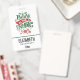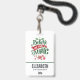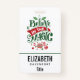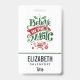 Personalised name badge with a cool illustration. Text says Believe in the Magic in fancy lettering. Decorated with christmas balls.