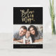 Share the magic of Christmas by sending your loved ones a modern holiday photo greeting card. This stylish holiday greeting card features faux gold foil text that says "Believe In the Magic", black background with grey dots, and placeholder for your custom photo and text.