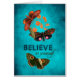 An inspirational and motivational message, "Believe In Yourself", over beautiful vibrant teal background with butterflies and flowers.