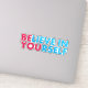 Boost your confidence and spread positive vibes with this bold "Believe In Yourself" motivational quote, featuring striking pink and black typography. A perfect inspirational message for self-love and empowerment.