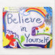 A mousepad featuring Ashlee Craft's "Believe in Yourself" poster.