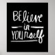 BElieve in YOUrself. Such an important message for anyone trying to find their way in the world. Original brush script design hand lettered.