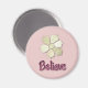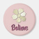 We all need something to believe in! Don't take it too far and believe everything you see or hear, though! Have hope and believe in your dreams. It's the secret to happiness. This girly pink flower design is a collage I made with decorative fabric pieces as the petals, on an acrylic painted canvas. The word "believe" is highlighted below in bright pink.