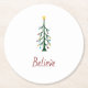 Believe Modern Christmas Evergreen Tree Round Paper Coaster
