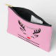 Believe modern funny Christmas reindeer pink Accessory Pouch. A funny and cute modern abstract image of a reindeer head with Christmas lights. With Christmas lights hanging from the antlers. White background. Personalise by adding your Christmas Message, your name.