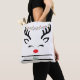 Believe modern funny Christmas reindeer white Tote Bag . A funny and cute modern abstract image of a reindeer head with Christmas lights. With Christmas lights hanging from the antlers. White background. Personalise by adding your Christmas Message, family name.