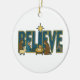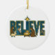 Beautiful nativity scene ornament with the word "Believe" containing the manger, Jesus, Mary, Joseph, a shepherd, sheep and a donkey. On the back is the scripture from John 3.16. Would make a thoughtful Christmas gift for Christian family and friends.