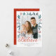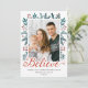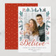 Believe Script Festive Holly Berries Pine Photo Holiday Card