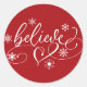Believe Script | Red Christmas Snowflake Flourish Classic Round Sticker