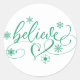 Believe Script | Simple Holiday Snowflake Flourish Classic Round Sticker