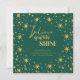 Believe Sparkle Shine Elegant Green and Gold Stars Holiday Card