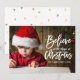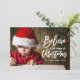 A perfect choice for your Christmas holiday greetings to your friends and family, a beautifully, simple holiday photo card design with the words "Believe in the Magic of Christmas" written in a trendy white script hand lettered font overlay. Design by ELKE CLARKE© Available exclusively at www.zazzle.com/monogramgallery*. Replace sample photo with your own. Faux gold foil design background on back of card. Other colours available in store.