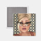 This is a fun female portrait featuring a very sassy girl wearing cats eye glasses and sporting a glamourous beehive hairstyle which seems to be attracting a lot of attention! The little buzzing bees and vintage spotted backdrop add the finishing touches to this pop art style design. A great gift idea for those into hair and beauty, retro fashion styles or just love the humour.