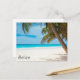 Anyone would love to receive this tropical travel postcard featuring a beautiful photo of a palm tree, the beach and the ocean in the town of San Pedro in Ambergris Caye, Belise!