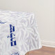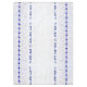 This tablecloth has the classic bell-and-pomegranate motif in blue with leaves and a the words "Shabbat Shalom" and "Koved Shabbat Kodesh" in Hebrew.