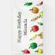 Bell peppers and sweet peppers on a birthday banner that would suit people of all ages.