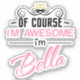 Of Course I'm Awesome I'm Bella in black and pink sans and cursive decorative font with scrolls and a golden crown.