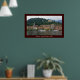 This is a low resolution image for the web, the print you'll get has sharp detail. Photography by Minerva Bloom. Approaching the town of Bellagio on a foggy morning by ferry at Lake Como, in the province of Lombardy, Italy. Dark red-brown border with peach colour text. CUSTOMIZE IT: choose your size, change the border colour or change the text!