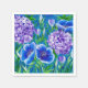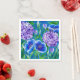 Bellisima Hydrangea Floral Napkins - part of the Bellisima Hydrangea Floral Party Collection - from an Original Acrylic painting by artist Jodi L Lopez. Features purple hydrangeas and blue poppies against a blue background.