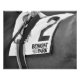 The iconic black and white saddlecloth #2 with the famous logo of Belmont Park adorns this black white photo of the colt "Winter Games at beautiful Belmont Park. Jockey saddle and irons are in place on this massive girth moments before riders up is called.