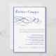 This beautiful wedding invitation features a unique horizon blue and silver hearts and swirls design.