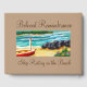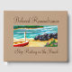 It has "Ship Resting on the Beach" watercolor painting. This design has mostly light and medium tones. It has soft blues and teal colours. There is a variation of shades to give it a moderate contrast. The ship is resting peacefully on the beach. It has "Beloved Remembrance" written on it.