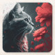 Below cat glass blooms the eye square paper coaster