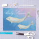 This beautiful watercolor Beluga Whale baby shower tissue paper features a mum and baby calf swimming in beautiful blue green with pink water.
